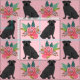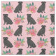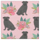 Black Pug dogs pink floral Fabric