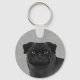 Black Pug Mops Dog Head Close-Up And Custom Name Keychain