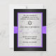This black, purple, and silver floral RSVP card with a purple PRINTED ON ribbon and jewelled brooch matches the Bat Mitzvah invitation shown below. If you require any other matching items in this design, please email your request to niteowlstudio@gmail.com.