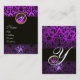 BLACK PURPLE DAMASK FLORAL MONOGRAM,Amethyst Business Card