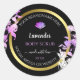 Make a lasting impression with this elegant floral design featuring a round gold frame with pretty purple flowers on a black background.