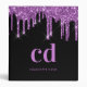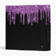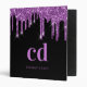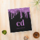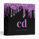 An elegant binder for school, office, diy procets or food receipes. A stylish black background, pink text. Decorated with purple faux glitter drips, paint dripping look. Personalize and add your monogram initials and your name on the front.