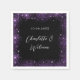 A stylish black background. Decorated with purple faux glitter, sparkles. Personalize and add your names and a date.