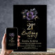 Black Purple Grey Floral 21st Birthday Party Invitation