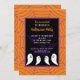 Personalize Hallow's eve invite with orange purple spider web Halloween pattern. With orange and white text and purple accents.