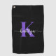 This simple, modern golf towel with your first name in a trendy script font in white and your first initial in a modern cap font in purple on black is perfect for you. It's stylish and trendy and yet very classic. It's unique - like you! Get a couple so you always have a clean one on hand.