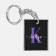This modern black keychain with your first name in a trendy script font in white and your first initial in a modern cap font in purple is perfect for your keys. It's stylish and trendy and yet very classic.