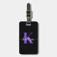 This simple, elegant black luggage tag with your first name in a trendy script font in white and your first initial in a modern cap font in purple on one side and your name, address and phone number on the other would look fabulous on your suitcases. It's stylish and trendy and yet very classic.
