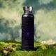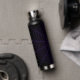 Black purple spider web Halloween pattern Water Bottle. Drinkware with Spooky Halloween cobweb gothic design and custom black background.