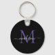 Black Purple Violet Monogram Name Elegant Script Keychain