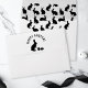 The top flap has Destei's bunny silhouette together with two Easter eggs in black color with a personalizable “Happy Easter!” text. On the front there is also a personalizable text area for a return address and mailing header. The inside of the envelope features Destei's black pattern of cute bunny shapes in different poses.