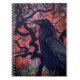 For raven and gothic fans! Decorate a living space with personal size notebook that features the photo image of a black Raven and a flaming red, twisted, gnarly Japanese maple tree. Use as a journal or for keeping notes.