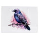 Gift bag with an image of a black crow with purple pink wings. A pink watercolor splatter behind this lovely mystical bird.