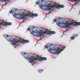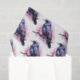 Tissue paper with an image of a black crow with purple pink wings. A pink watercolor splatter behind this lovely mystical bird.