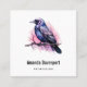 Business cards with an image of a black crow with purple pink wings. A pink watercolor splatter behind this lovely mystical bird.