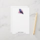 Stationery paper with an image of a black crow with purple pink wings. A pink watercolor splatter behind this lovely mystical bird.