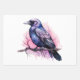 Wrapping paper sheets with an image of a black crow with purple pink wings. A pink watercolor splatter behind this lovely mystical bird.