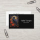 Business cards with a black crow perched on a branch surrounded by red flowers. Cool gothic vibe.