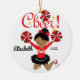 Black & Red Cheer Cute African American Cheerleader Ornament. Easy to personalize with your name & date. Visit our shop to view this ornament in a large variety of school colours & hair colours