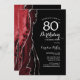 Black red and white agate 80th birthday party invitation. Elegant modern design featuring watercolor agate marble geode background, faux glitter silver and typography script font. Trendy invite card perfect for a stylish women's bday celebration. Printed Zazzle invitations or instant download digital printable template.