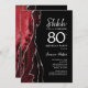 Red, black and silver agate surprise 80th birthday party invitation. Elegant modern design featuring watercolor agate marble geode background, faux glitter silver and typography script font. Trendy invite card perfect for a stylish women's bday celebration. Printed Zazzle invitations or instant download digital printable template.