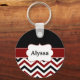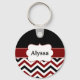 Black Red Chevron Personalized Keychain