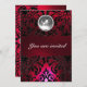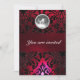 BLACK & RED DAMASK GEM STONE MONOGRAM burgundy Invitation