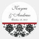 Our black damask with a red accent wedding stickers are the Perfect finishing touch for your wedding invitations, thank you notes or bridal shower favours. Matching items available in our shop @ www.celebrateitweddings.com. This item is available in a variety of colour combinations!