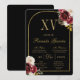 Black red floral quinceañera invitation