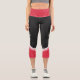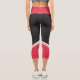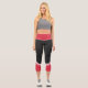 These black and red stylish workout leggings feature an elegant white floral design on the waistband and on the legs with white stripes.