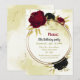 Beautiful birthday party invitation featuring black and red flowers and gold leaves .