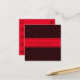 This square business card front features a black background with a red outlined circle pattern. It is designed as a business loyalty punch card. The punch circles are numbered on the back with a message of gratitude. Fill in the template fields with your information for the front and back, REMOVE the back text or click customize to select a typeface style, size, and colour you prefer.