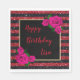 Black Red Glitter Stripes Pink Roses Birthday Napkin