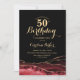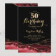 Black, red and gold agate 50th birthday party invitation. Elegant modern design featuring watercolor agate marble geode background, faux glitter gold and typography script font. Trendy invite card perfect for a stylish women's bday celebration. Printed Zazzle invitations or instant download digital printable template.