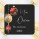 For a Christmas party favours or gift wrapping. A black coloured background. Decorated with red and gold baubles. Personalize and add your name, year. Text: Merry Christmas