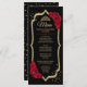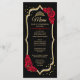 Black gold red Quinceanera menu card. Features script font, red roses, tiara and confetti. Classy design with faux glitter gold. Perfect for an elegant glam celebration.