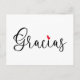 Decorative black with a red heart (both colours can be customized in the graphic) "Gracias" minimalist wedding or quinceañera thank you postcard.
