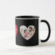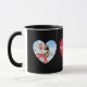A black coloured background decorated with a red heart, 2 photo heart frames. Personalize and add your name.