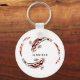 A keychain with a pair of black and red koi fish swimming and circling around each other. Simple minimalist design.