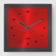 Black & Red & Metallic Stainless Steel Square W Wall Clock