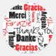 Say thank you with a round sticker designed with red and black multilingual "Thank You" typography in a variety of font styles over white. Great for sealing mail, favour bags, or homemade favour tags.