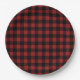 Black Red Plaid Check Paper Plates