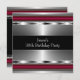 Black red silver chrome metallic look man's classy masculine fortieth birthday party invitation.