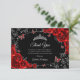 Black, red and silver Quinceanera celebration thank you card. Features, script font, butterflies, watercolor roses and tiara. Perfect for an elegant princess style glam celebration. Personalize with your own details.