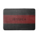 An elegant black and red image of leather is stitched with a customizable monogram.