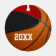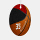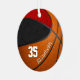 This personalized girls' basketball ceramic ornament features a basketball graphic with easily customizable player name and jersey number on the front and holiday year on the back - the basketball has two coloured panels, one black and one red, blended with a digitally created texture for an artsy appearance - by katz_d_zynes | see more basketball ornament colour combinations by searching "basketball ornaments" in my shop | see more girls’ basketball gifts in my "Basketball team colours gifts for girls" collection >>> https://www.zazzle.com/collections/119901188031358626