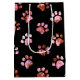 Black Red Textured Paw Print Pattern Medium Gift Bag