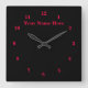 Personalized Design Your Own Custom Text and Colors - Black and Red Wall Clocks - Add Your Text / Name - Choose / add your favorite background and number colors / font / size ! Resize and move or remove and add text / elements with Customization tool. Design by MIGNED. Please see my other projects / designs and paintings.