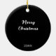 Decorate your Christmas tree with this festive black and white harlequin pattern ceramic ornament. This ornament features green holly leaves and red berries. Turn it over to personalize with your own words.