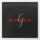 Black Red Your Name Initial Monogram Modern Glass Coaster